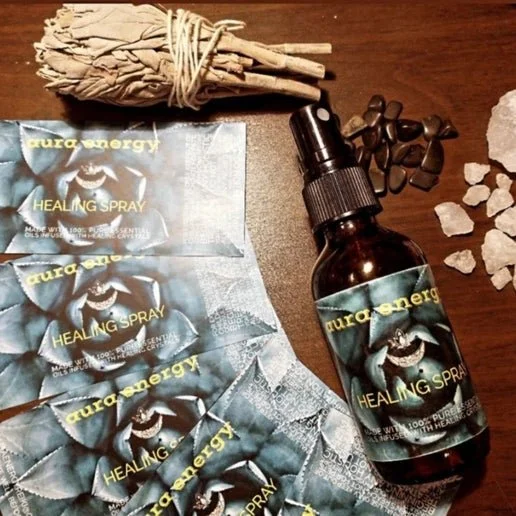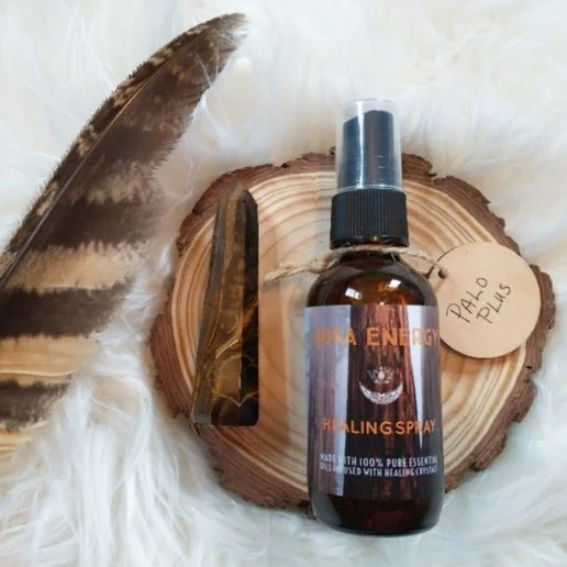 Created with the Essential Oil of Palo Santo, Myrrh, and Rosemary. This blend is perfect for when one can not burn Palo Santo sticks. Spray blend is infused with Reiki, Vibrational Sound Therapy and includes crystals inside each bottle for added healing benefits.